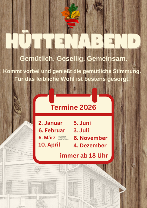 Hüttenabend Fr., 06.02.2026, Gundelsheim Uhrzeit: 18:00 Ort: Albvereinshütte Calvarienberg 11 74831 Gundelsheim iCalendar Mit dem Laden der Karte akzeptieren Sie die Datenschutzerklärung von Google.Mehr erfahren Karte laden Google Maps immer entsperren zur Übersicht